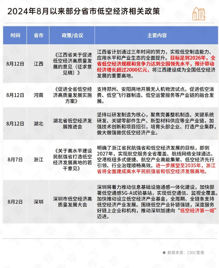 2024年3月,低空经济被首次写入政府工作报告,并被定义为“新增长引擎”,进入8月,多个城市推出了低空经济的支持性政策。
