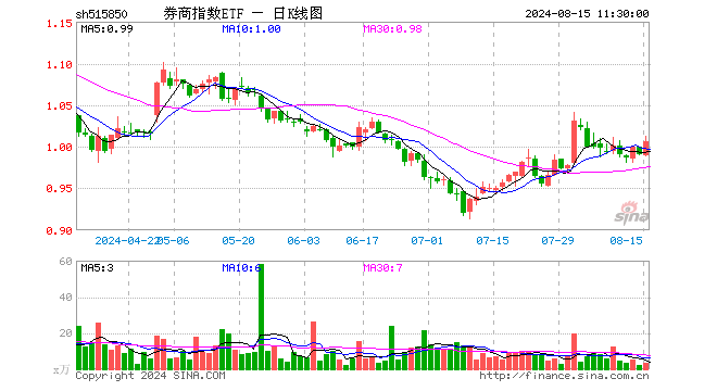 券商指数ETF(515850)涨1.51%,半日成交额356.37万元