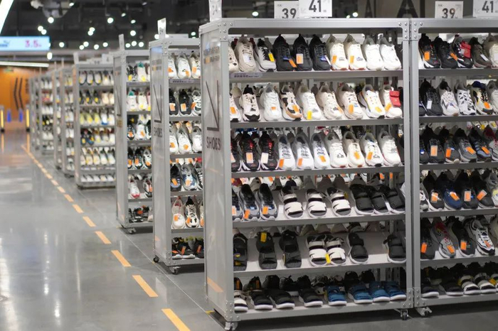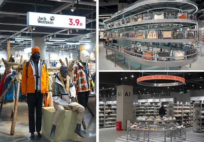男女装、童装、鞋包以及美妆等分区排布,品类齐全,货量大到令人惊讶。