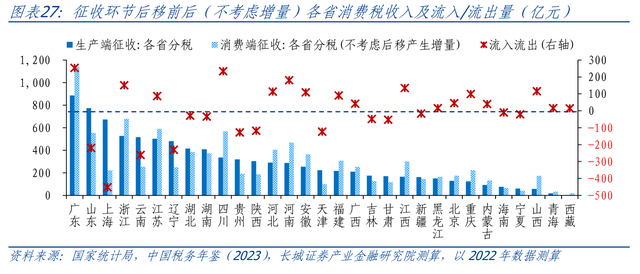 同样的,若在此基础上进一步推动消费税中央、地方分成(即:先后移再分成),可获得增量收入的省份与上述情形一致。