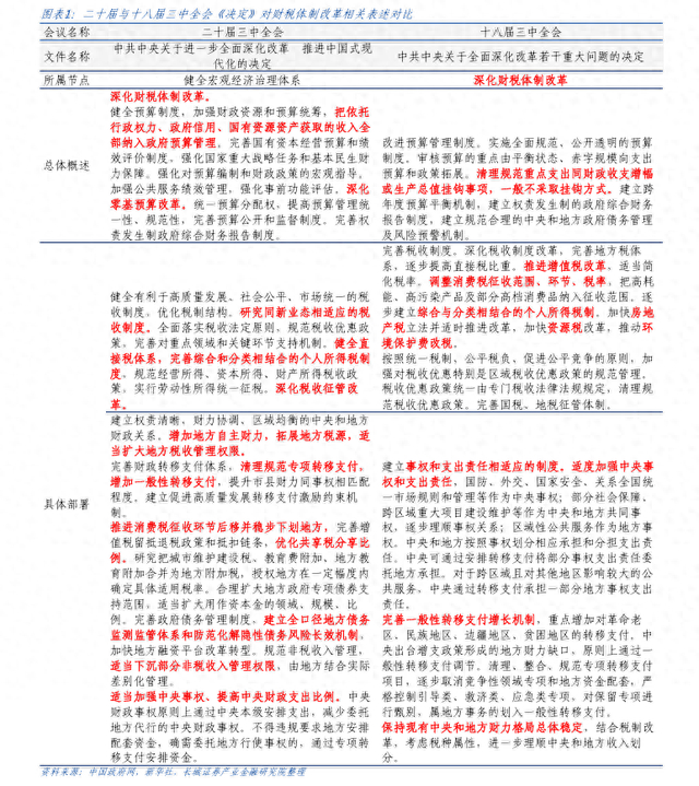 2024年7月21日,《中共中央关于进一步全面深化改革 推进中国式现代化的决定》(下称《决定》)发布,提出了一系列改革任务。其中,在“健全宏观经济治理体系”部分,阐述了深化财税体制改革的重点方向,涵盖了健全预算制度、健全税收制度(央地结构、税目结构)等方向。我们理解,《决定》中提出的财税改革,可谓目标导向和问题导向相结合。
