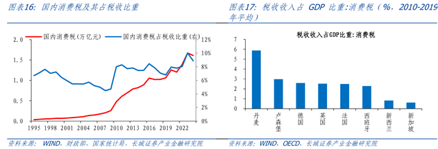 不过从消费税占GDP比重看,对比全球一些消费税制度与我国类似的发达国家如英国、法国、德国、卢森堡、新西兰等,2010年-2019年其消费税收入占GDP比重的平均水平在2%以上,我国的这一指标可能还有一定的上升空间。