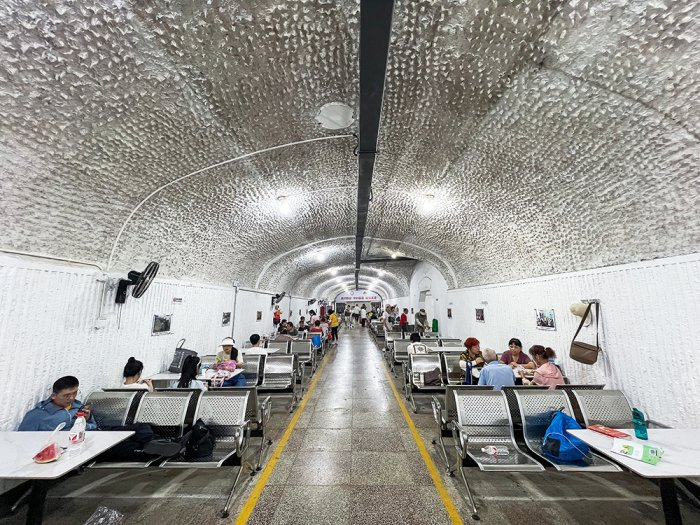 8月4日,浙江杭州,城市“炙烤”模式升级,持续出现40℃酷热高温天气,免费开放的四牌楼防空洞避暑纳凉点吸引众多市民前来“寻觅清凉”,温度计显示洞内温度只有不到25℃。