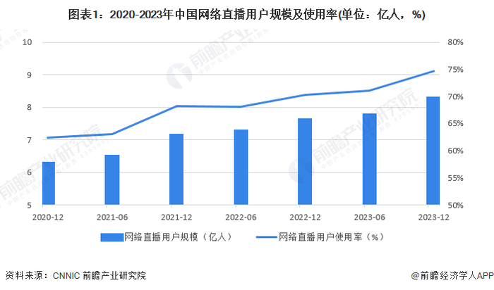 近年来,随着平台技术的进步和内容的丰富,中国网络直播市场发展迅猛,用户规模不断扩大。截至2023年底,中国网络直播用户数已达到8.16亿人,同比增长8.66%。随着技术的进步和内容的多样化,网络直播成为越来越多网民用户的重要娱乐和社交方式。