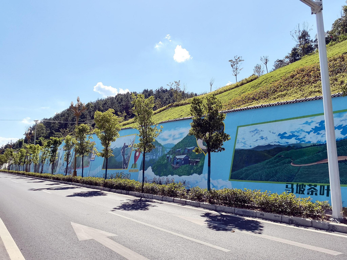 平安畅通的建始交通公路线,成为建始文化的展示宣传线。金建大道与S339省道连接线交汇处,7月完工的数百米长、近千平方米的边坡彩绘景观墙,聘请当地文化名人现场彩绘,内容色彩真实明艳,生动展示了建始风采,成为一道亮丽的风景线。