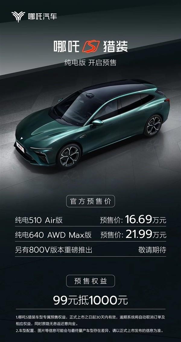 哪吒汽车的CEO张勇近日宣布,哪吒S猎装车系列的纯电车型正式开启预售。在预售的纯电车型中,哪吒S猎装510Air版定价为16.69万元,而640AEDMax版的价格为21.99万元。此外,哪吒还计划推出800V版本的车型。