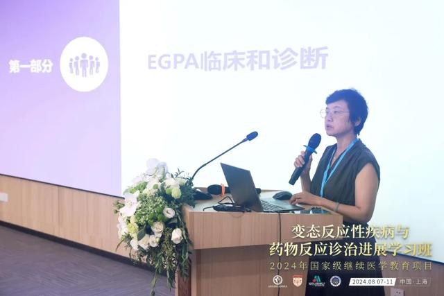 复旦大学附属华山医院蔺林教授结合临床实践对过敏性鼻炎的发病机制、诊断方法、病情严重度评估、预防和治疗方案进行了系统讲解。复旦大学附属华山医院施慎逊教授通过生动有趣的临床病例展开了心理问题与变态反应性疾病的讨论。复旦大学附属华山医院罗忠光教授介绍了嗜酸性胃肠炎的最新研究进展,并总结了现有的治疗方式。复旦大学附属华山医院朱彤莹教授从病例出发,分享了过敏性紫癜性肾病的相关因素和诊治。复旦大学附属华山医院袁燕副教授对嗜酸性细胞增多症的鉴别诊断和治疗进行了仔细讲解。复旦大学附属中山医院金美玲教授强调了在哮喘治疗中应基于临床表型决定后续个体化治疗方案。复旦大学附属中山医院风湿免疫科的姜林娣教授从病因、发病机制、病理特征,到临床表现、疾病标志物、分期与评分、规范化诊疗,重点强调了EGPA的诊断与鉴别诊断。复旦大学附属眼耳鼻喉科医院龚岚教授介绍了眼表黏膜免疫与眼部过敏性疾病诊治进展。浙江大学医学院附属第二医院的汪慧英教授结合自身的临床实践和国内外研究成果,深入讲解了遗传性血管性水肿的发病机制、临床分类、常见表现以及最新的诊断和治疗策略。