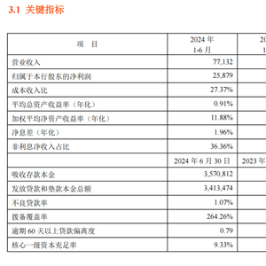 2024年上半年,平安银行实现营业收入771.32亿元,同比下降幅度较大为13.0%。净利润258.79亿元,同比增长1.9%。而在今年一季度,平安银行净利润同比增长了2.3%。