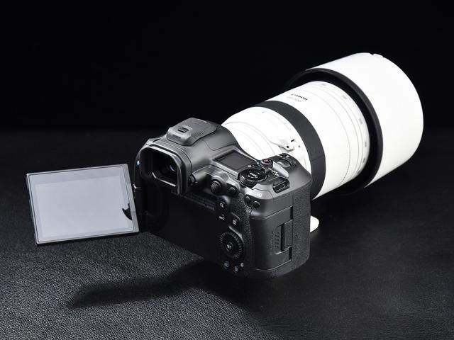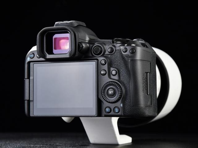 首先我们先来说一下这台相机的机身设计。这台相机的正面设计与EOS R5基本一致,依然保持了佳能一贯的设计风格。机身有着优秀的握持手感,不论是手柄还是蒙皮的手感都是一流水准,在使用大镜头比如RF100-500mm F4.5-7.1时,即便在夏天手出汗的情况下依然能稳定抓住机身。