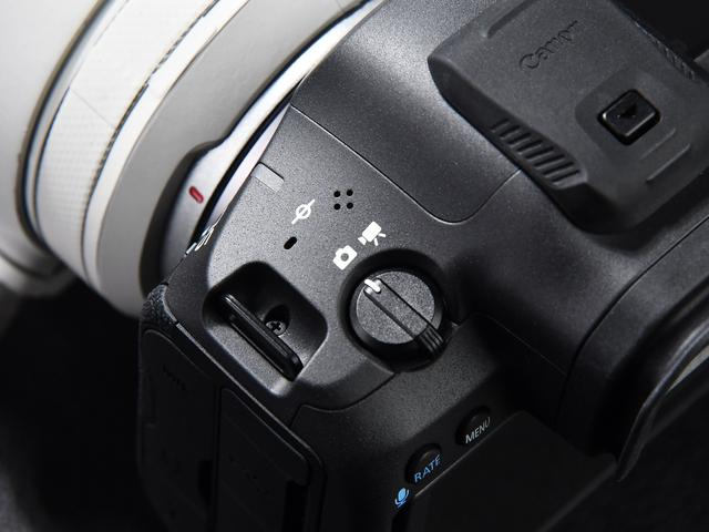 R5M2在整体设计有一些变化,这台相机开机开关调整为机身右侧。而左侧调整为拍照/视频模式的快速切换拨杆,这样可以快速由拍照模式切换为视频模式。