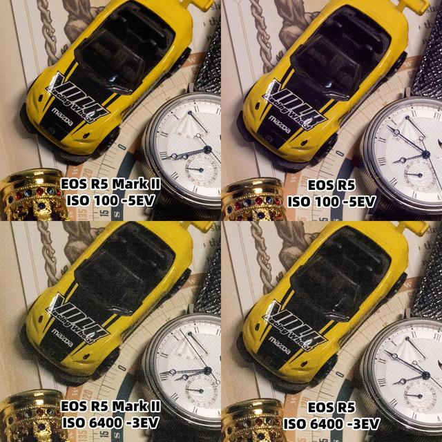 在ISO 6400下,因为堆栈式传感器的缘故,EOS R5 Mark II的暗部噪点会稍多于一代机身,但是整体差别并不大。