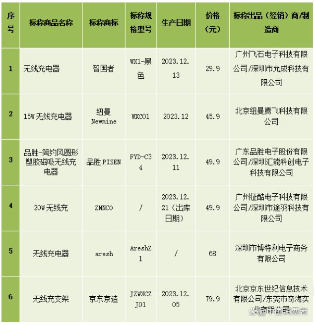 手机无线充电器测评,纽曼、品胜6款样品未通过安全测试