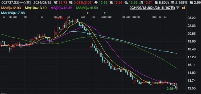 值得注意的是,在被约谈信息披露后,一心堂股价持续下跌,截至最新,总市值已蒸发近50亿元。