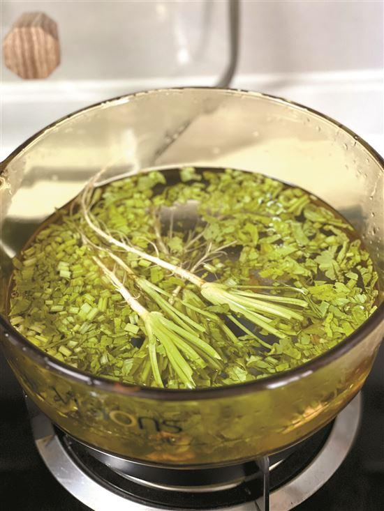 ■香菜根是烹制“灵魂小料汁”中不可缺少的一员。