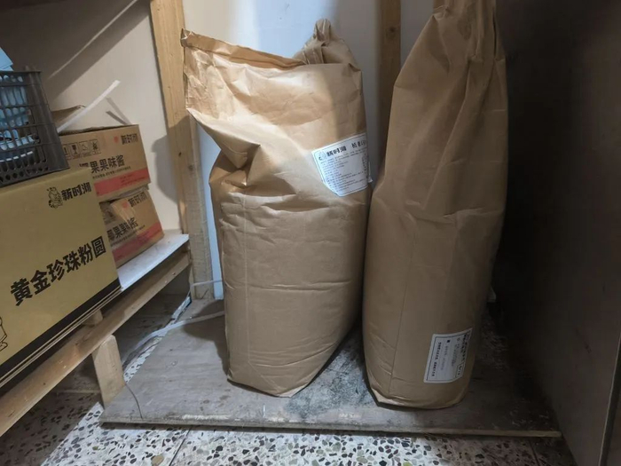 ☒ 食品材料离地高度不足十公分。