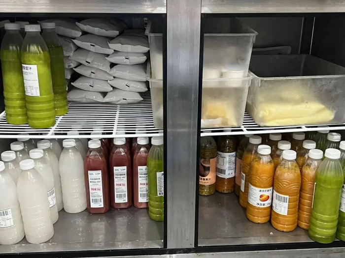 ☑ 冰箱内原料摆放整齐,冰箱内部干净卫生,无结霜污渍;