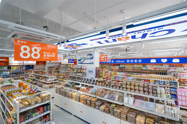 养馋记,总部位于浙江嘉兴,单店SKU达到3000+,不同于一般量贩零食品牌连锁,养馋记的经营品类涵盖零食、生鲜水果、农特产、低温短保、冻品、年节礼盒、日杂、代购、童玩文具等,其中零食类目合作品牌数就有1000+,几乎覆盖国内外一线品牌及厂家。
