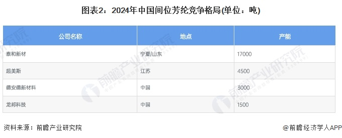从我国间位芳纶企业竞争来看,行业已建成一定产能规模的领先企业有泰和新材、超美斯、德安德新材料和龙邦科技,其中2024年泰和新材的间位芳纶年产能为17000吨,占比为30.30%,居全球第二位。