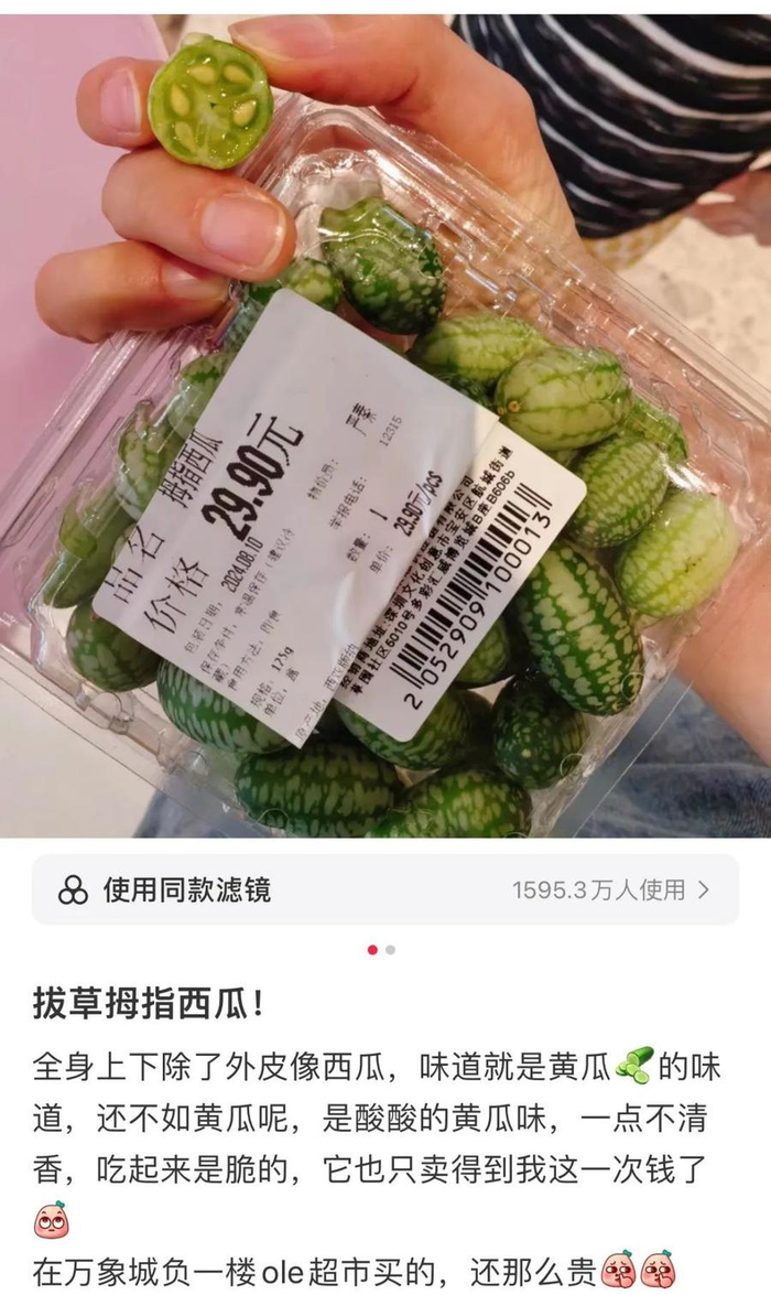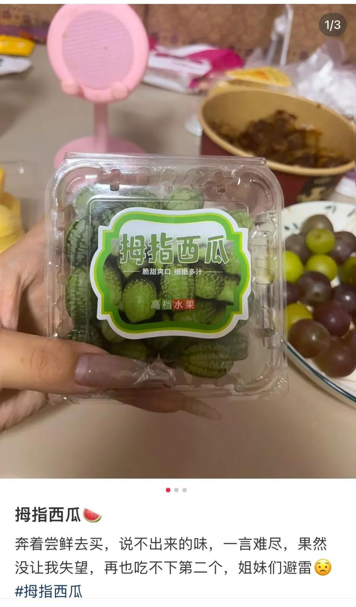 还有一种和拇指西瓜很像的水果上市了,虽然一样贵,但口碑好多了。