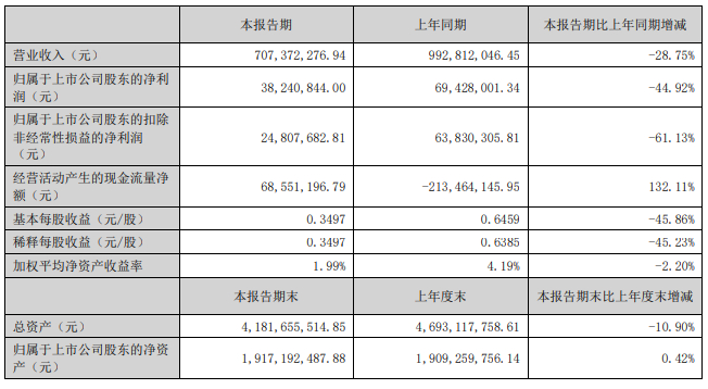 8月11日,上海市翔丰华科技股份有限公司(简称:翔丰华)发布了2024年半年度报告,报告显示,翔丰华上半年营业收入约7.07亿元,同比减少28.75%,归属上市公司股东的净利润约3824.08万元,同比下降44.92%;扣非净利润2480.77万元,同比下降61.13%。其中,翔丰华的负极材料营业收入约7.06亿元,同比下降28.51%,毛利率同比下降3.14%。