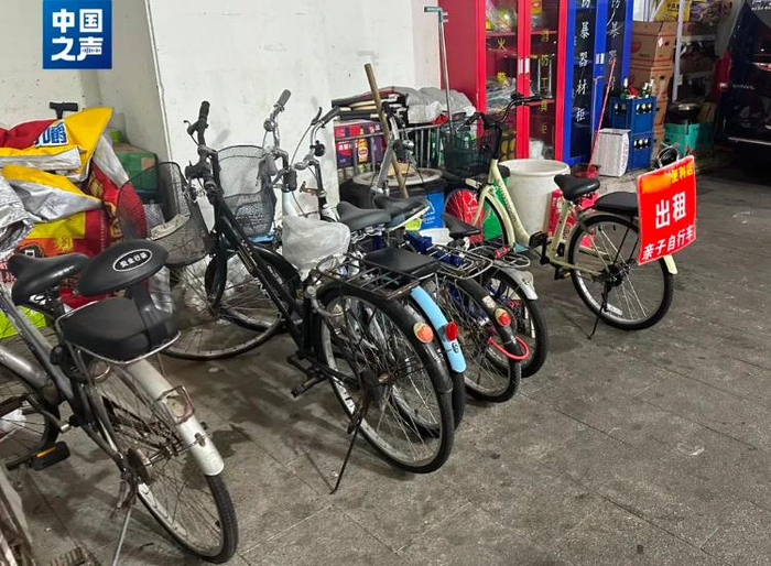 记者实地走访发现,这些出租自行车大多是“亲子车”,车座前或后轮上方设有儿童座椅,也有一些车辆前后各装有一个座椅。