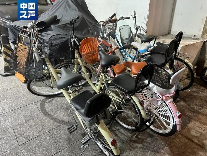 但是距离这家旅行社仅几十米的一家便利超市前,自行车租赁点的车辆情况稍有不同,记者发现,这些自行车上的儿童座椅都是工作人员后加装的。
