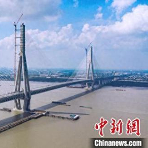 中新网南京8月16日电 (记者 朱晓颖)15日,随着主航道桥最后一根碳纤维水平拉索架设完成,常泰长江大桥工程的又一项世界首创技术——温度自适应塔梁纵向约束体系落地完成。至此,大桥4项世界首创设计全部落地,中国超大跨径桥梁施工在新结构、新材料、新设备、新工艺等方面再取得重大突破。