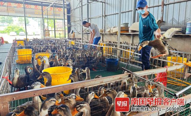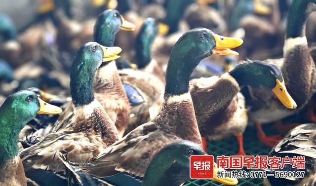 16日,南宁红星鲜活禽市场,青头鸭批发出货。