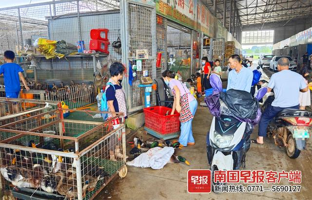 16日,南宁红星鲜活禽市场,不少市民前来买鸭。