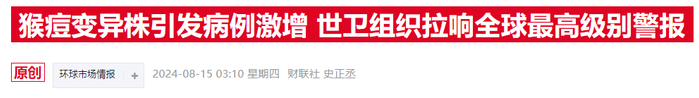 本周早些时候,非洲疾控中心主任让·卡塞亚宣布猴痘疫情为非洲公共卫生紧急事件。而在后一天,世界卫生组织总干事谭德塞宣布,猴痘疫情构成“国际关注的突发公共卫生事件”。