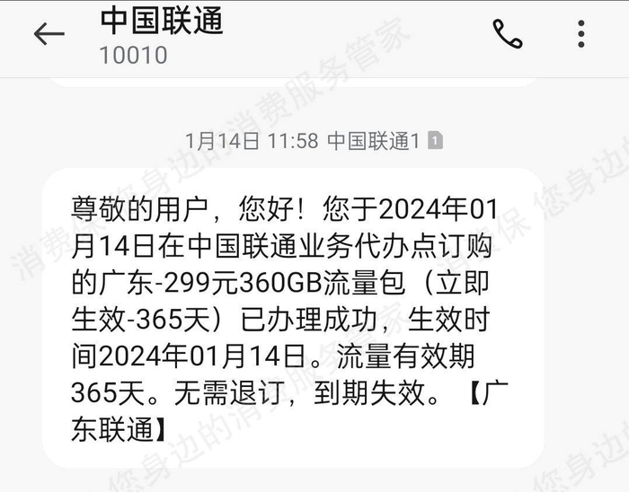 无独有偶,消费者吴先生也遇到类似的事,他在消费保平台投诉称,其手机号码在未经允许的情况下被开通了一个299元的流量套餐。吴先生表示,由于未经授权的流量套餐开通,其手机号被停机,导致一段时间内无法正常使用手机进行通话和短信,影响了其与他人的正常沟通,并带来了实际的经济损失。