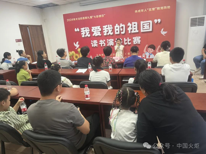 8月13日,天津市滨海新区大沽街道关工委依托闸南路社区“五爱”教育阵地开展了以“我爱我的祖国”为主题的演讲比赛活动。
