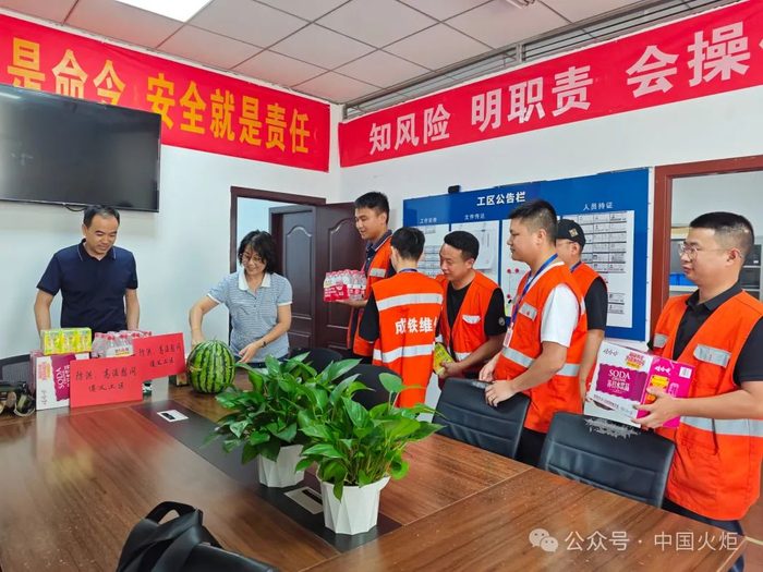 8月15日,中国铁路成都局集团有限公司成铁科创公司(成都设备维保段)关心下一代工作委员会来到管内贵阳维保车间遵义工区,为一线员工送去盛夏的凉爽与组织的关怀,对大家在高温天气下依然坚守岗位、辛勤工作的精神给予了高度赞扬。