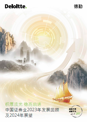 德勤中国金融服务业研究中心近日发布《积厚流光 稳而后进:中国证券业2023年发展回顾及2024年展望》报告,涵盖了2023年宏观经济和证券业发展回顾、2023年上市证券公司业绩分析、业务观察、行业热点话题探讨及2024年宏观经济和证券业发展展望五个章节。