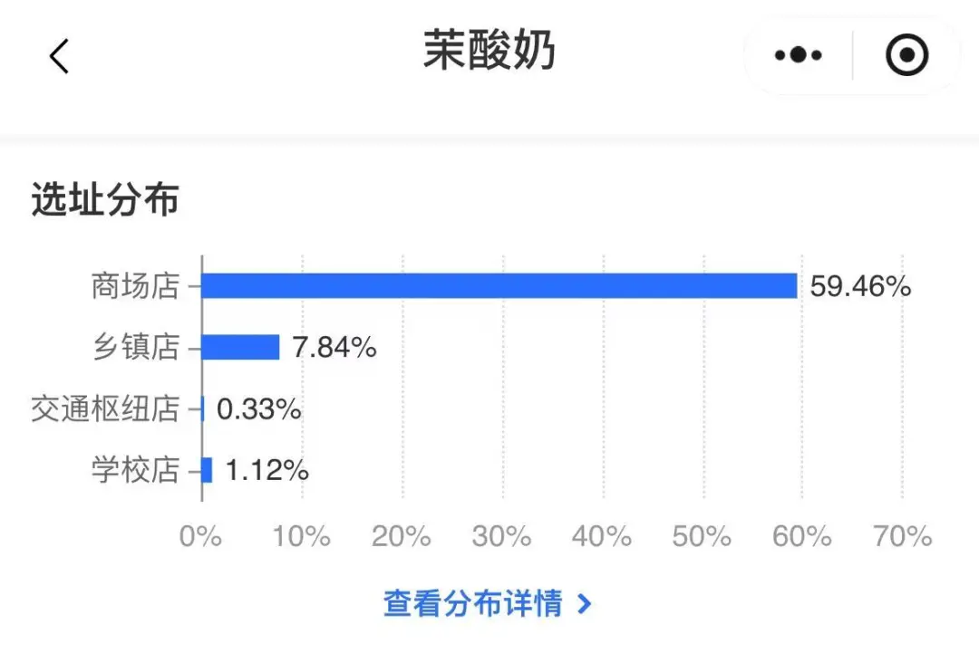窄门餐眼显示,截至今年6月初,茉酸奶共有门店1517家,江浙沪是门店布局最多的区域,在选址分布上,商场店占比59.46%,而学校店仅1.12%;对比来看,拥有超9400家店的古茗,商场店占11.86%,学校店占6.47%;拥有超8000家店的沪上阿姨,商场店同样占比不高,为14.76%,学校店占比8.53%。