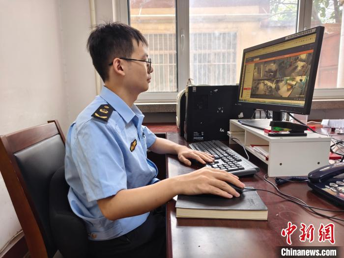 临清市市场监管局执法人员利用“互联网+明厨亮灶”平台对学校食堂开展线上巡查。(资料图 临清市委宣传部 供图)