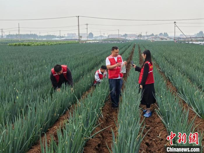 安丘市农安中心农安员正在大葱种植基地进行抽样。(资料图 安丘市委宣传部 供图)