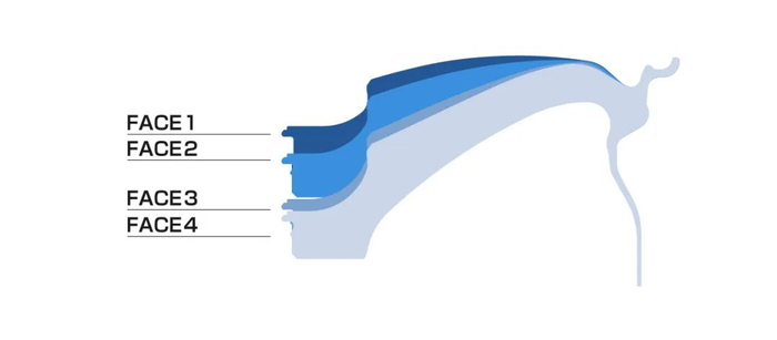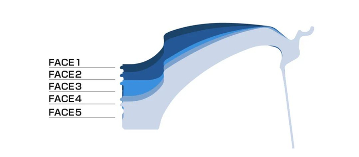 RAYS专利的A.M.T.技术在轮辐表面应用了机械加工刻字。结合哑光黑色透明涂层,使其散发出独特的光泽。