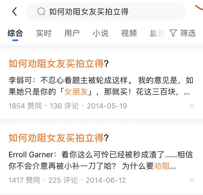 2014年知乎上有人提问:如何劝阻女友买拍立得?