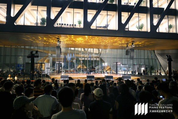 晚上7点30分,随着德利布《“葛贝利亚”圆舞曲》的旋律在海河畔响起,天津茱莉亚学院 “市民乐享”户外音乐会也再次启幕。据介绍,本场“市民乐享”户外音乐会由2024天津茱莉亚钢琴艺术节(以下简称“钢琴节”)的青少年学员们呈现,他们的年龄仅在8到12岁之间。现场,他们为观众带来了风格多样的作品曲目,从德利布的《“葛贝利亚”圆舞曲》到阿尔贝尼斯基于传统西班牙踢踏舞创作的《伊比利亚》,从肖邦的《圆舞曲》到李斯特的《罗马尼亚民间舞曲》,年轻的新锐艺术家们与观众们共同度过了美好的“舞曲之夜”,充分展现了本届钢琴节的国际视野与多元魅力。现场,从大连来到滨海新区学习的天津茱莉亚钢琴艺术节青少年学员任玉蓉告诉记者,她今年刚刚8岁,已经学钢琴四年的时间了,此次参加“市民乐享”音乐会的演奏也是她首次走到户外的大舞台之上,她说:“我今天弹的是李斯特的《侏儒之舞》,选择它是因为我觉得它的节奏很欢快,弹起来像一个个小精灵、小侏儒在跳舞,我非常喜欢这首曲子,希望也把这种欢乐带给观众们。今天也是我第一次在户外的舞台上演出,我非常喜欢这样的舞台,也非常享受它。”来自山东的吕吉备今年已经是第二次参加“市民乐享”音乐会的演出了,他告诉记者,几天前他就已经来到了天津茱莉亚学院,开始了钢琴艺术节期间的学习和演出,他说:“我这次是从2024天津茱莉亚钢琴艺术节一开始就过来了,期间不仅上了一对一的课程,还参加了大师课,其中让我感觉最棒的就是这次和天津茱莉亚室内乐团的合奏,让我收获非常大,今年在户外的‘市民乐享’音乐会上,我演奏的是肖邦的乐曲,希望大家也能在海河边感受到肖邦的浪漫。”
