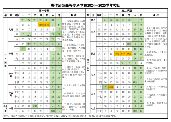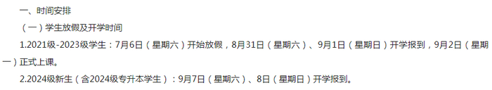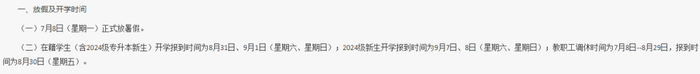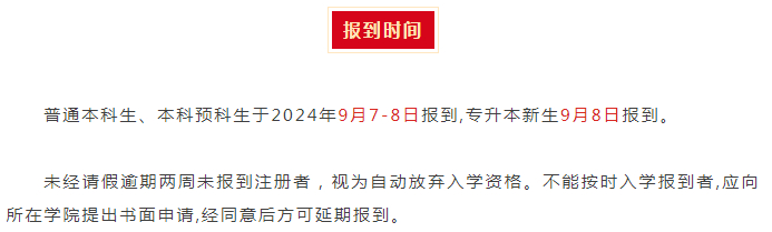 2024级新生(含2024级专升本学生):9月7日(星期六)、8日(星期日)开学报到。