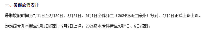 2024级专升本新生9月1日报到,9月2日上课;2024级本专科新生9月7日、8日报到。