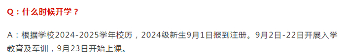 9月5-6日本科24级报到,9月7-8日体检、领教材,9月9日开始上课,10月8-20日军训。