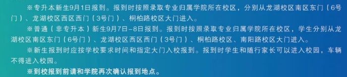 专升本新生9月1日报到。普通(非专升本)新生9月7日-8日报到。