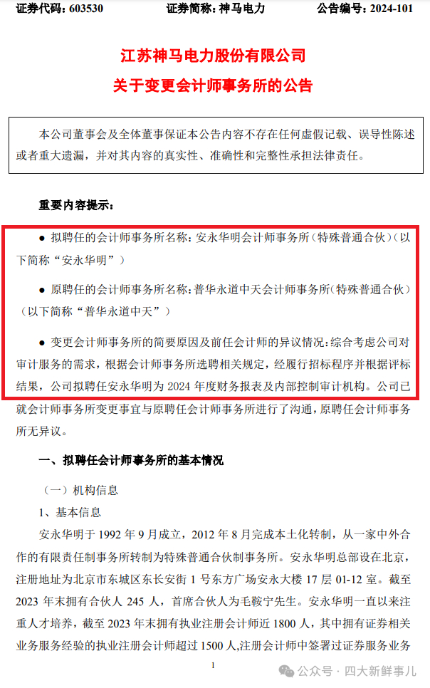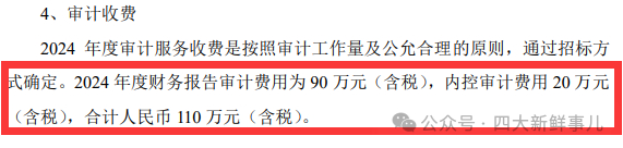 上交所主板上市公司神马电力(603530.SH)2024年8月17日发布的《关于变更会计师事务所的公告》显示,综合考虑公司对审计服务的需求,根据会计师事务所选聘相关规定,经履行招标程序并根据评标结果,公司拟聘任安永华明为2024年度财务报表及内部控制审计机构。2024年度审计服务收费是按照审计工作量及公允合理的原则,通过招标方式确定。2024年度财务报告审计费用为90万元(含税),内控审计费用20万元(含税),合计人民币110万元(含税)。