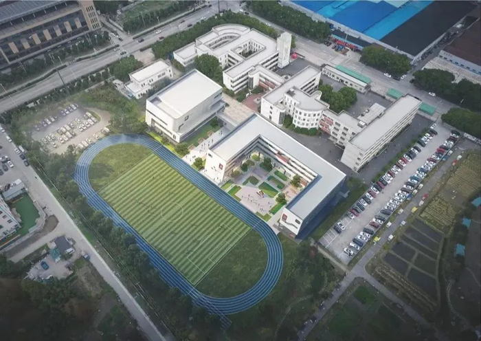昆山市蓬朗高级中学位于昆山开发区景王路南侧、钱塘江路东侧,占地125亩,建筑面积约9.19万平方米,设计规模16轨48班(预留4轨),主要建设内容包括教学楼、艺术楼、实验楼、综合楼、餐厅、宿舍、门卫、地下车库等,计划2024年秋季学期投用。