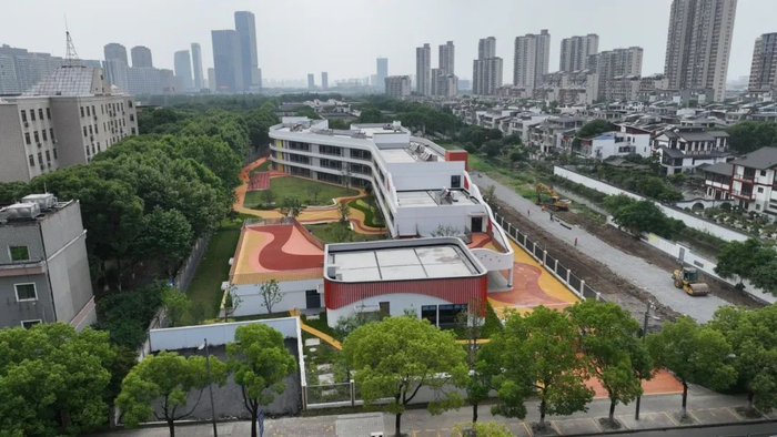阳澄湖中路幼儿园项目位于相城区阳澄湖中路北、支十路西,总用地面积约9529平方米,总建筑面积约1.5万平方米,办学规模为7轨21班。除多功能厅、图书阅览室外,园内还增设了风雨活动区、科学发现室、美工创意室、木工坊、烹饪室、情境室等,计划今年9月投用。