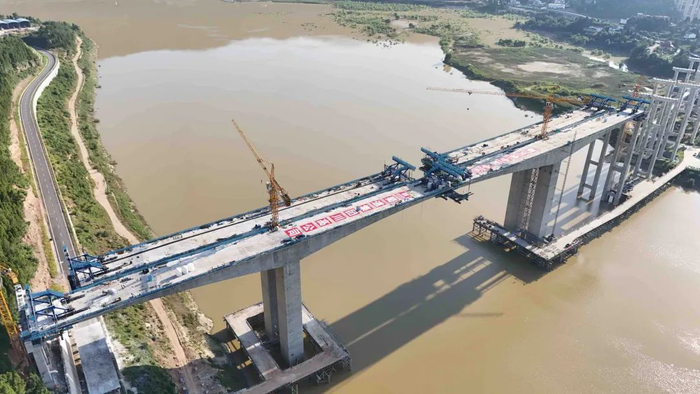 日前,G5京昆高速公路广元至绵阳段扩容项目(以下简称:广绵扩容项目)嘉陵江特大桥右幅顺利合龙,为实现广绵扩容项目2026年6月全线建成通车奠定坚实基础。