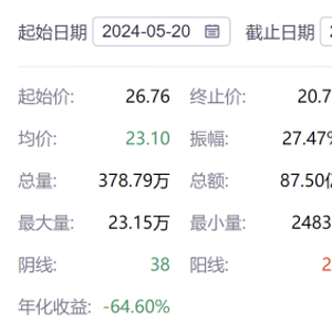 实际上,自五月下旬以来,其股价便持续下跌,截至8月13日收盘,公司股价报收20.77元/股,跌幅0.48%,公司当前总市值为196.1亿元。经统计,在本轮股价下行区间,公司股价累计跌超22%,市值蒸发超56亿元。
