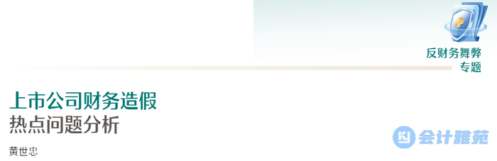 云顶财说 | 黄世忠:上市公司财务造假热点问题分析